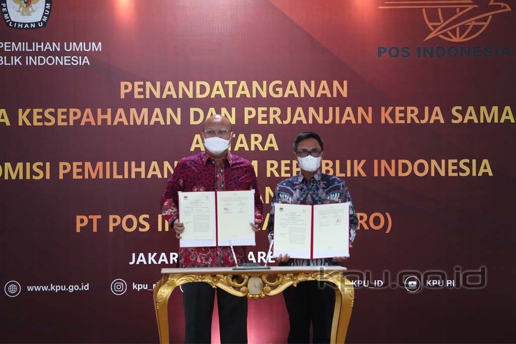 Jakarta, kpu.go.id – Komisi Pemilihan Umum (KPU) RI, menjalin kerja sama dengan PT Pos Indonesia (Persero), Kamis (17/3/2022). Kerja sama dituangkan dalam Nota Kesepahaman (Memorandum of Understanding/MoU), yang ditandantangi Ketua KPU RI Ilham Saputra dengan Dirut PT Pos Indonesia (Persero) Faizal Rochmad Djoemadi. Juga berlangsung Penandatanganan Perjanjian Kerja Sama antara Sekjen KPU RI Bernad Dermawan Sutrisno dengan Executive Vice President Regional II PT Pos Indonesia (Persero), Arifin Muchlis. Dalam sambutannya Ilham Saputra menyambut baik terealisasinya kerja sama dengan PT Pos Indonesia (Persero) yang ditujukan untuk menyukseskan proses distribusi logistik Pemilu dan Pemilihan 2024. Terlebih proses distribusi logistik menurut dia kerap menjadi bahan evaluasi disetiap pemilu dan pemilihan sebelumnya. “Saya kira di Pemilu 2024 mendatang mari kita siapkan dengan matang terutama distribusi logistik. Saya tentu saja merasa bahagia dan tidak meragukan lagi PT Pos, distribusi logistik,” ujar Ilham. Terlebih dari informasi yang diterimanya dari Dirut Faizal Rochmad Djoemadi, PT Pos Indonesia (Persero) saat ini juga telah memanfaatkan dan mengembangkan teknologi informasi yang memudahkan masyarakat memantau barang yang dikirimkan. Hal ini tentu juga menjawab tantangan distribusi logistik di Indonesia yang terdiri dari ribuan pulau. Sementara itu Faizal Rochmad Djoemadi juga menyambut baik kerja sama dengan KPU RI sebagai mitra untuk mendistribusikan logistik kepemiluan. Dengan 4.800 lebih kantor pos di seluruh Indonesia, 50 ribu agen yang membantu di seluruh Indonesia dia optimis dapat mengelola logistik kepemiluan dengan baik dan tepat waktu. “Jadi insyaAllah PT Pos Indonesia siap mendukung pemilu, kapanpun. Jadi setiap saat Pos Indonesia standby,” kata Faizal. Faizal menambahkan, seperti yang sudah diutarakan kepada Ketua KPU, PT Pos Indonesia saat ini juga memaksimalkan dan mengembangkan TI dalam proses distribusi. Yang mampu menelusuri barang baik dari sisi jenis, hingga titik koordinat barang tersebut ada. “Sistem digital kami untuk meningkatkan akuntabilitas, jadi kami juga siapkan dashboard untuk menyiapkan kerja sama seperti ini, real time bisa dimonitor oleh KPU barangnya dimana saja,” tambah Faizal. Lebih lanjut Faizal meyakinkan sistem yang dimiliki PT Pos Indonesia (Persero) juga telah digunakan sejak 2020, dalam proses penyaluran BST (9 bulan), 2021 pada bansos dan di 2022 menyalurkan 18,8 juta kepada keluarga penerima manfaat. Pada pertemuan ini juga disampaikan cinderamata berupa perangko bergambar Ketua KPU RI Ilham Saputra serta perangko bergambar Sekjen KPU RI Bernad Dermawan Sutrisno. Turut hadir menyaksikan secara luring penandatanganan Anggota KPU RI I Dewa Kade Wiarsa Raka Sandi, Pejabat Eselon I, II dan III Setjen KPU RI, para pimpinan PT Pos Indonesia (Persero) serta KPU Provinsi se-Indonesia secara daring. (humas kpu ri dianR/foto: dosen/ed diR)