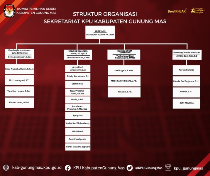 Struktur Organisasi Selasa, 07 Oktober 2025 07:00 33 Struktur Organisasi Komisi Pemiluhan Umum Kabupaten Gunung Mas Tahun 2025 Baca Selengkapnya