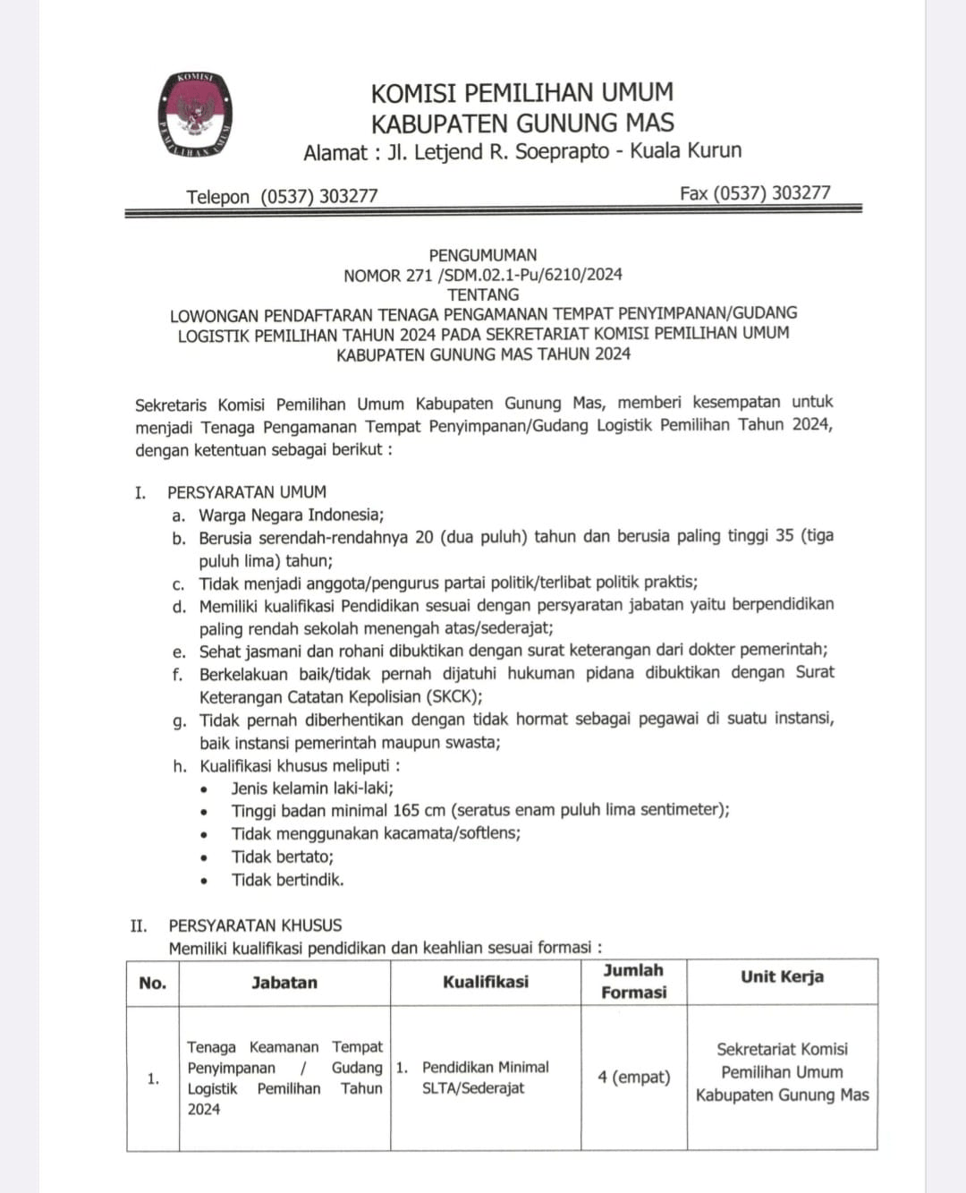 https://kab-gunungmas.kpu.go.id/public/kab-gunungmas/dmdocument/1726371319LOWONGAN%20PEKERJAAN%20PENJAGA%20GUDANG%20PADA%20KPU%20KABUPATEN%20GUNUNG%20MAS.pdf