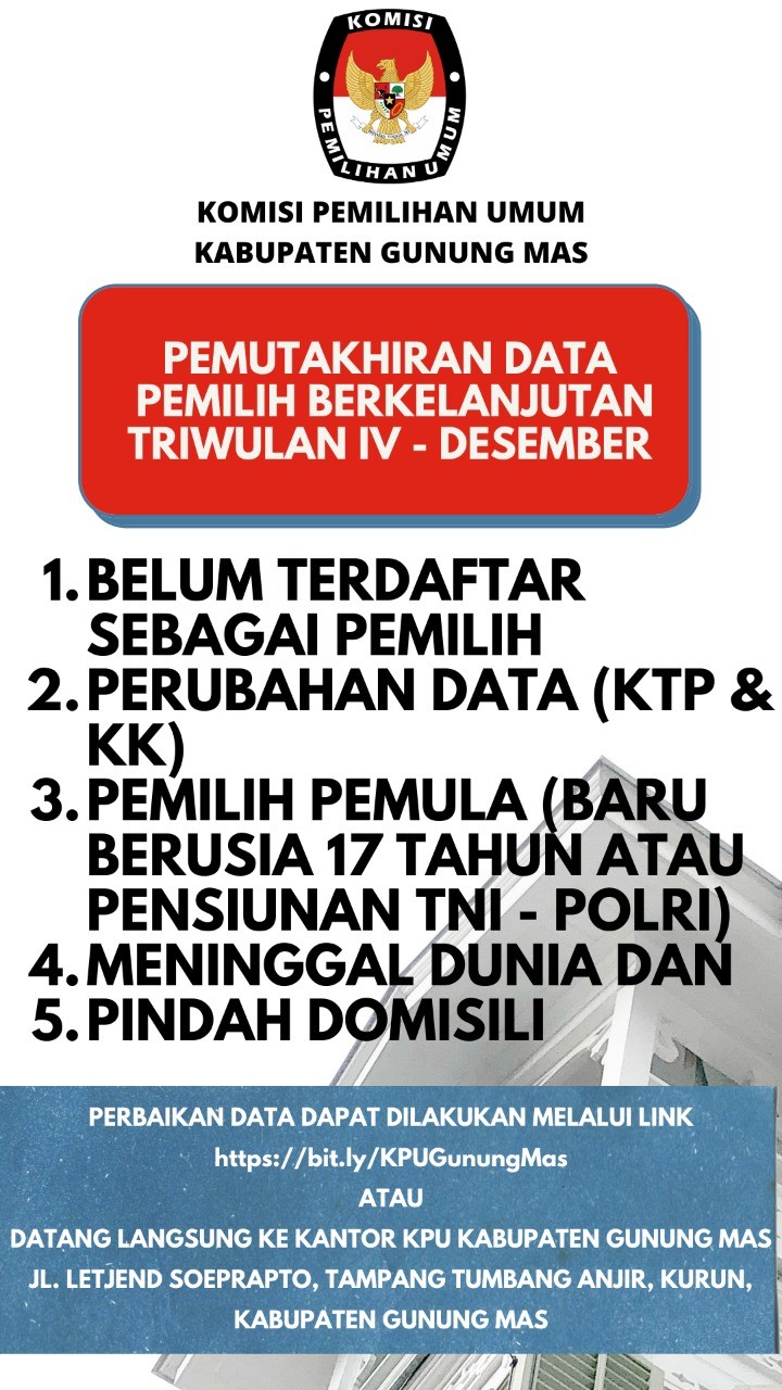 Pengumuman Pemuktahiran Data Pemilih Berkelanjutan Semester IV Tahun 2021 Minggu, 06 Juni 2021 20:21 657 Pengumuman Pemuktahiran Data Pemilih Berkelanjutan Semester IV Tahun 2021 Baca Selengkapnya